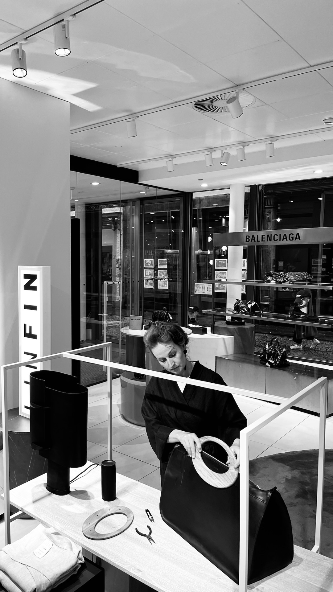 “To create live at de Bijenkorf is to share not only our bags, but the intimacy of craftsmanship itself.”